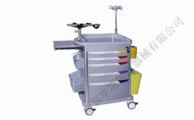5.右侧:网篮内有两只两升锐器盒、配有隐藏式伸缩输液架、ABS双污物桶;