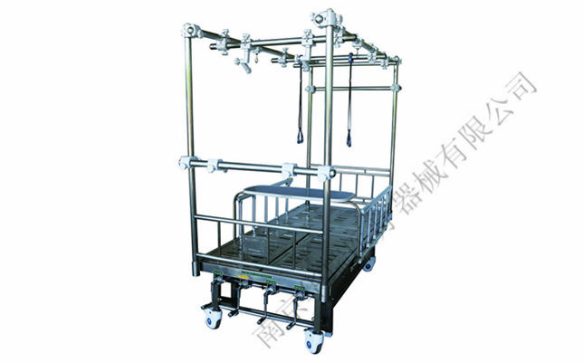 备 注:四摇、不锈钢,龙门式牵引架,床体可倾斜,床面尺寸:1980×900×500,有轮,带餐台,铝合金折叠护栏。