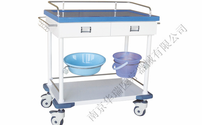 备注:上台面为彩色人造玛瑙石,2小抽,车身带23只挂盐水瓶的挂钩,配可转动塑料污物盆、污物桶各一只,台面尺寸:800×500