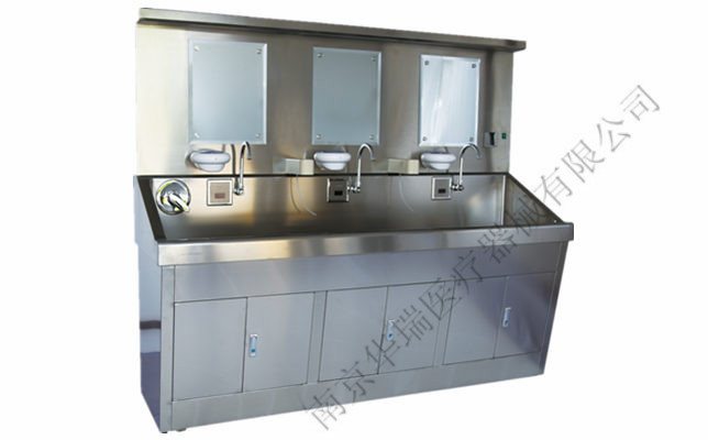 代码:C291、C292生产单位:南京华瑞医疗设备制造有限公司 规格:三位:2200×650×1915 两位:1600×650×1915 备注:出水方式:感应式,含过滤器 出洗手液方式:感应式,带灯、镜子 加热方式:热水器加热